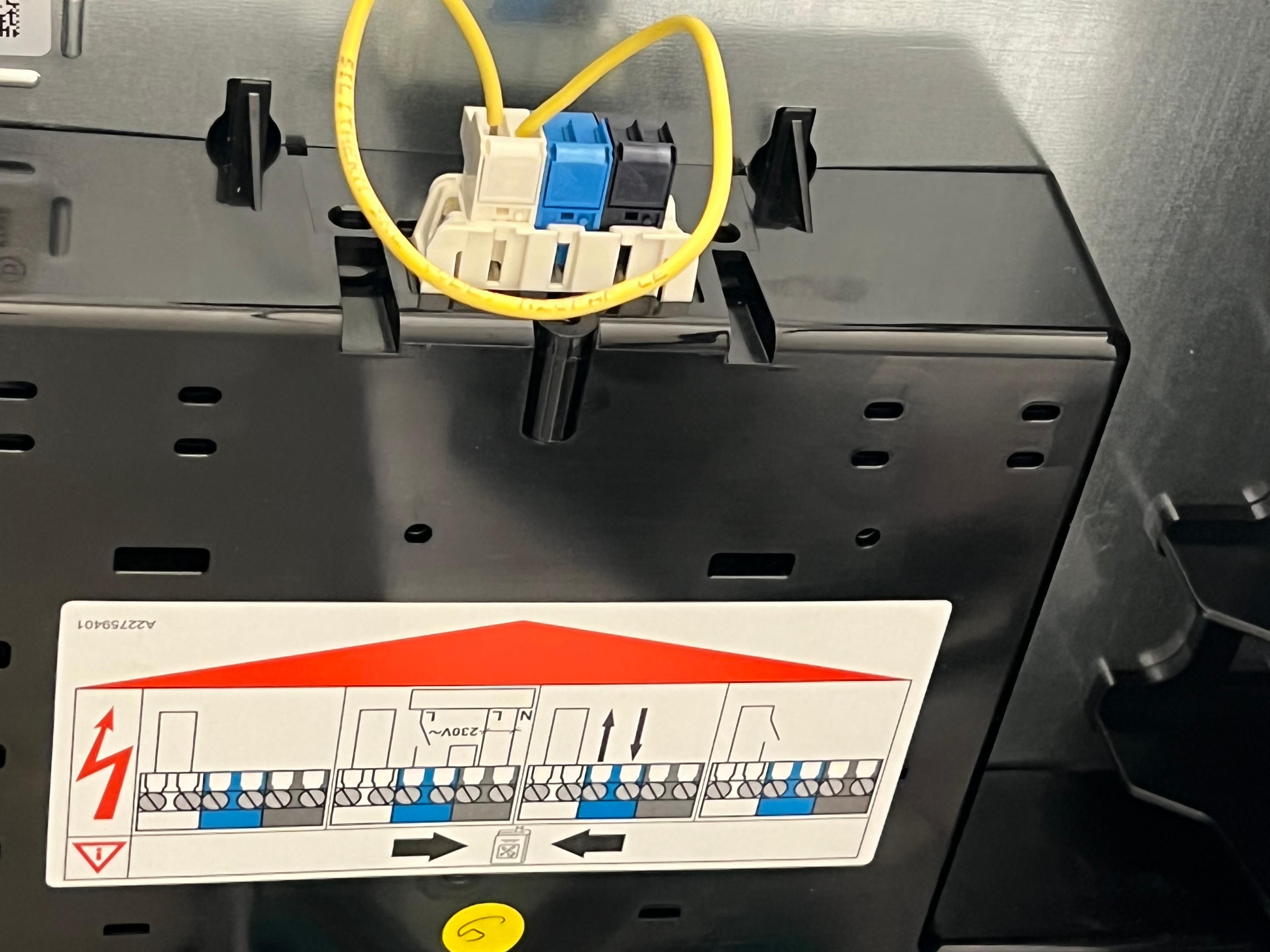 - Installera en bit kabel i den vita kontakten (enligt bild)