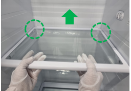 Var försiktig så att du inte skadar de inre fodrarna på hyllramens hållare.