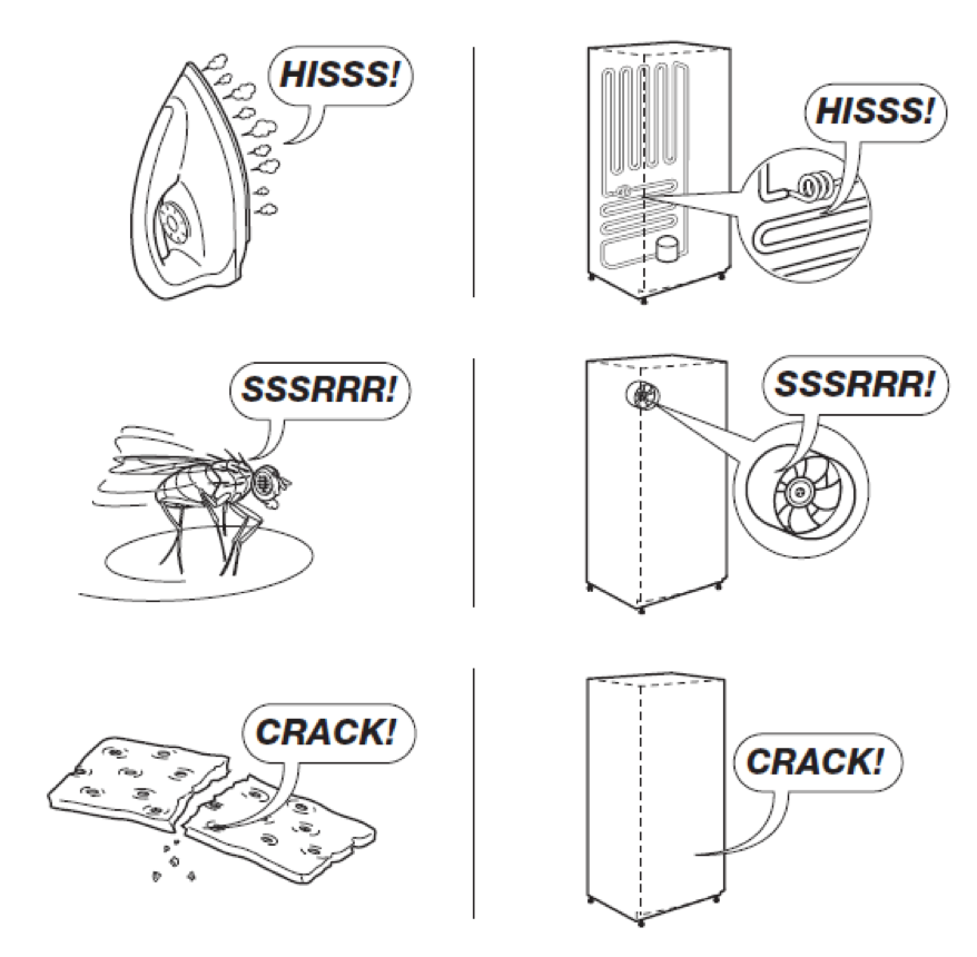 - Kyl-/frysskåpet avger konstiga ljud; snurrande, klonkande, klickande, poppande, vibrerande, motor som går