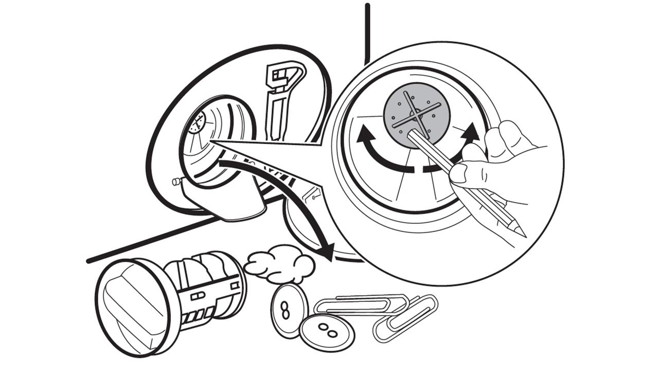 6. Om nödvändigt, ta bort ludd och föremål från filterhålet.