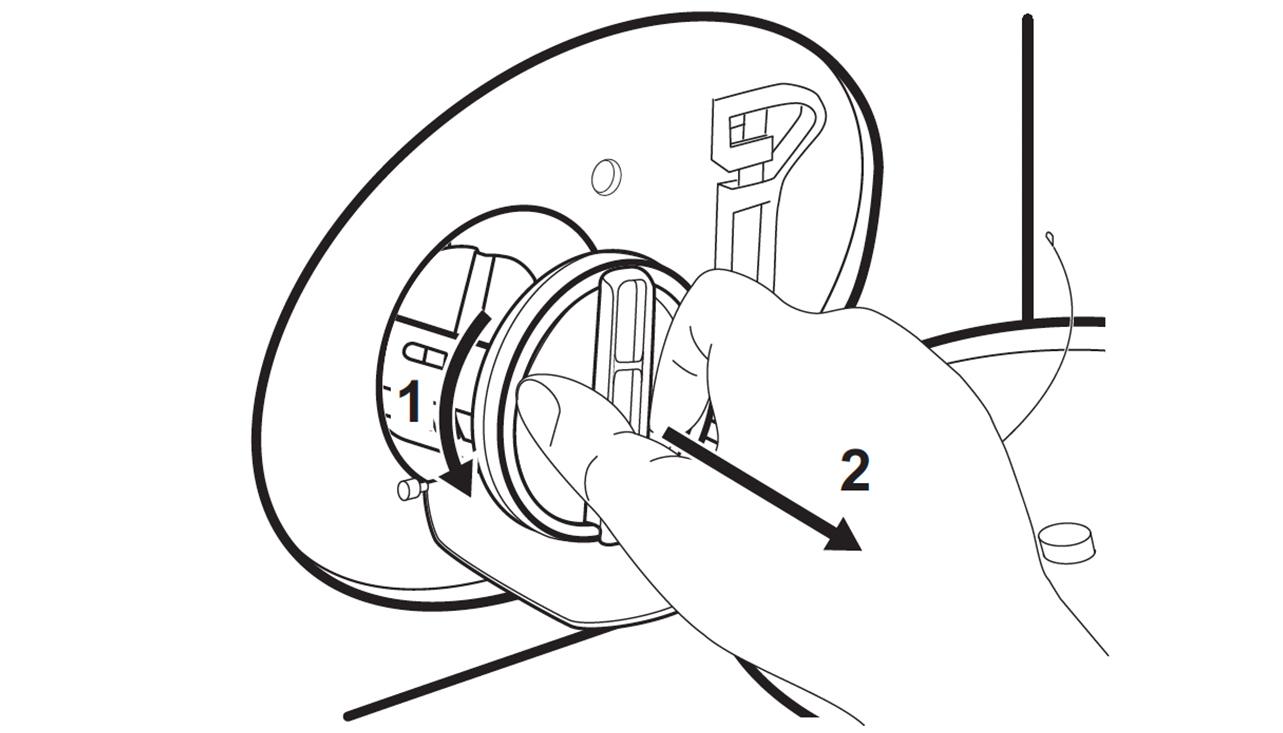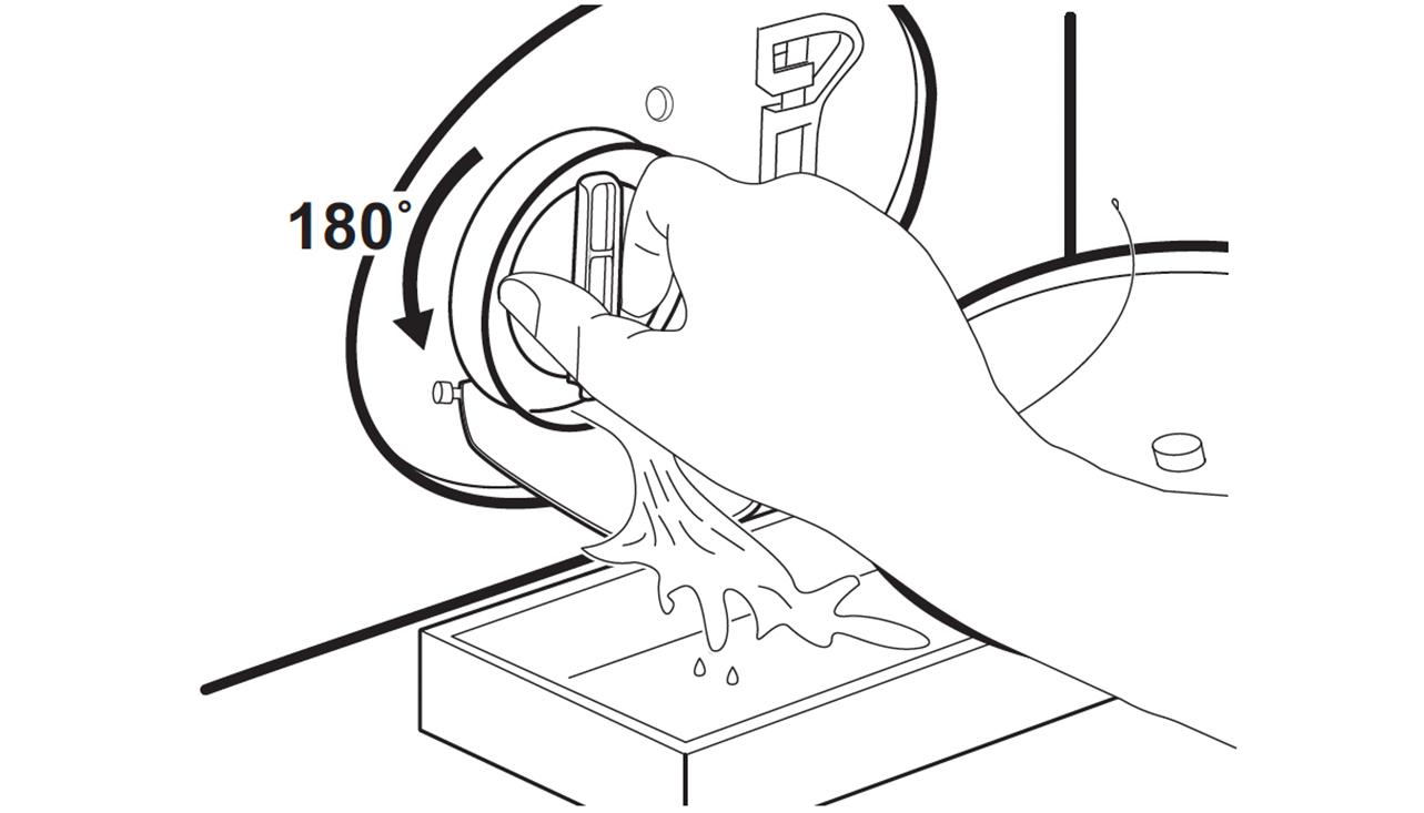 4. Rotera filtret 180 grader moturs för att öppna det; ta inte bort det. Låt vattnet rinna ut.