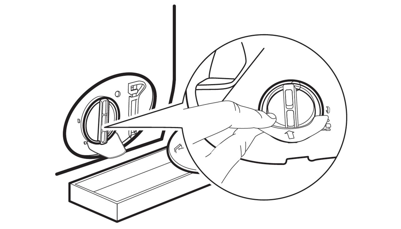 3. Öppna tråget nedåt. Ha alltid en trasa i närheten för att torka upp eventuella vattenläckor när du tar bort filtret.